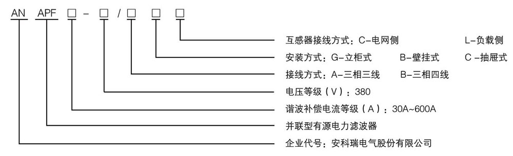 適用于并聯(lián)在含諧波負載的低壓配電系統(tǒng)中,能夠對動態(tài)變化的諧波電流進行快速實時的跟蹤和補償。訂貨范例: