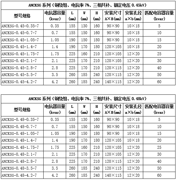 ANCK系列串聯電抗器與ANBSMJ系列自愈式低壓并聯電容器配套使用,主要用于提高0.4kV電力系統的功率因數,有效抑制電網的高次諧波,減輕電容器由諧波引起的過載,防止諧波放大,對電容器的安全運行,改善網絡電壓波形,提高供電質量和電網安全經濟運行起良好作用。應用范圍:
