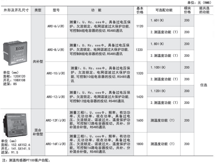 技術要求:輸入三相電壓AC220V;輸入電流AC5A;投切方式順序投切;補償方式三相共補;投切控制路數6路;開關量輸入6路;柜內溫度檢測。