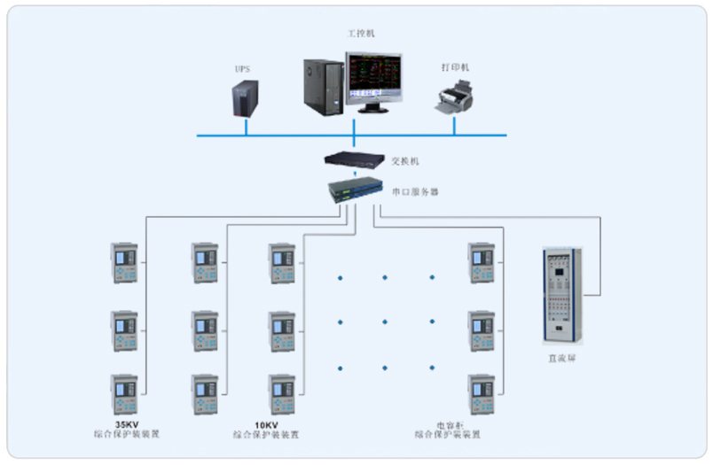 本項目有兩路35KV電源進線,經兩臺12500KVA變壓器變壓為10KV對項目進行供電,系統(tǒng)采用Acrel-2000型電力監(jiān)控系統(tǒng),整個系統(tǒng)采用網絡分布式結構,監(jiān)控主機2層變電所值班室,綜合保護裝置、直流屏、多功能儀表等設備采用RS485總線組網接入變配電站內的數據采集器,進而接入變電站值班室電力監(jiān)控主機。該項目實現了上海徐工工程機械有限公司變電站電力系統(tǒng)的智能管理。
