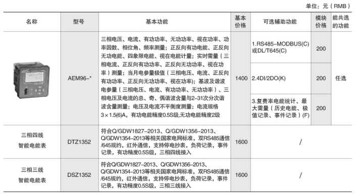 AEM96嵌入式安裝電能計量表